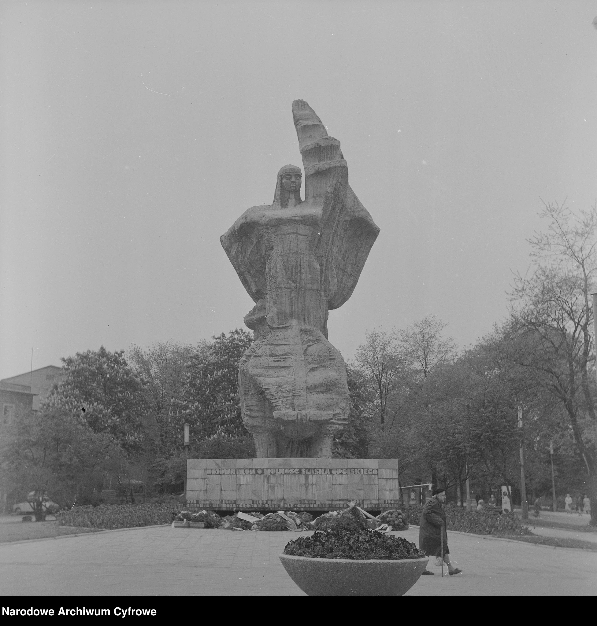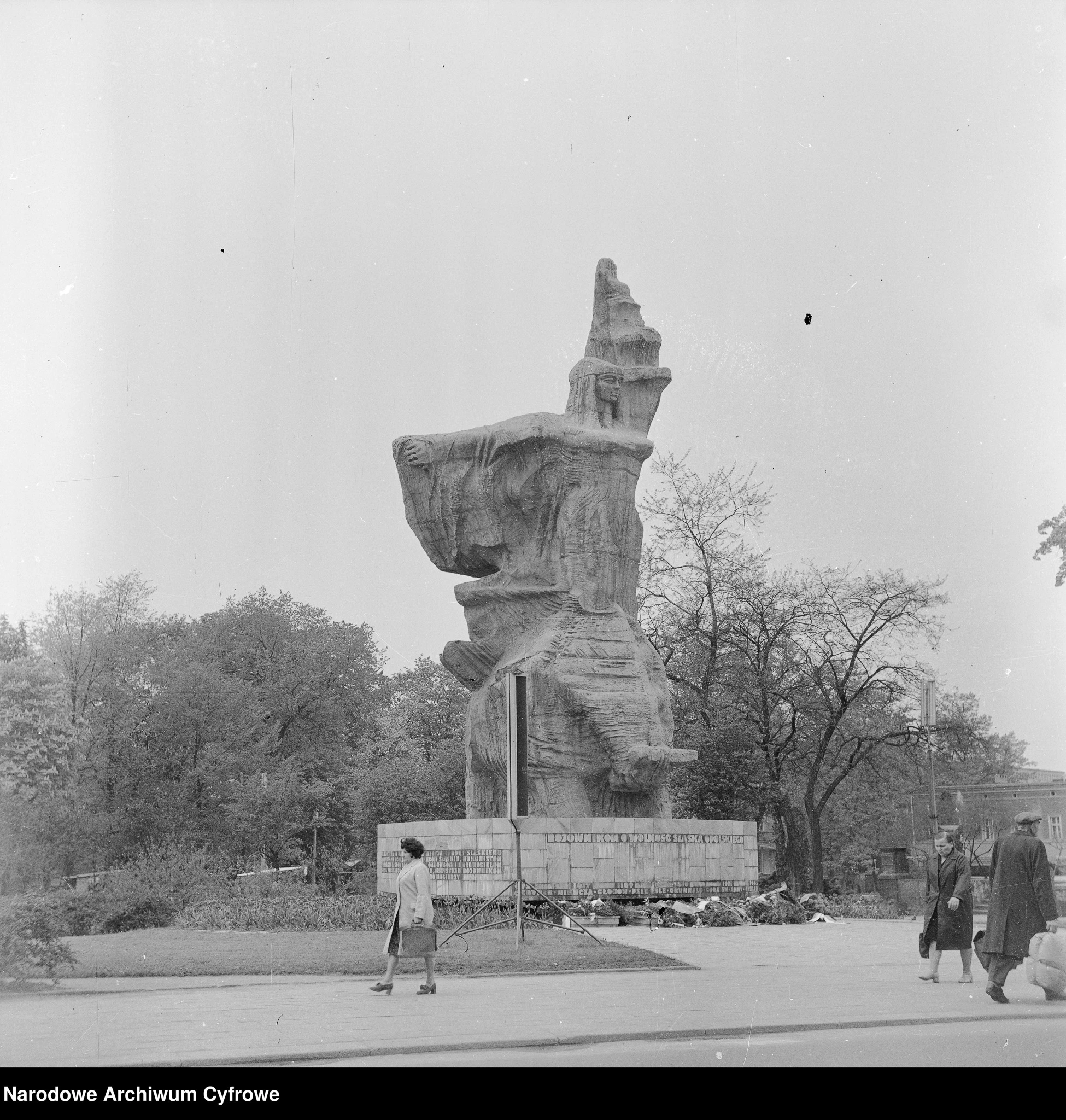 - Pomnik Bojownikom o Wolność Śląska Opolskiego. Fot. Grażyna Rutowska, 1973. Źródło: Narodowe Archiwum Cyfrowe.